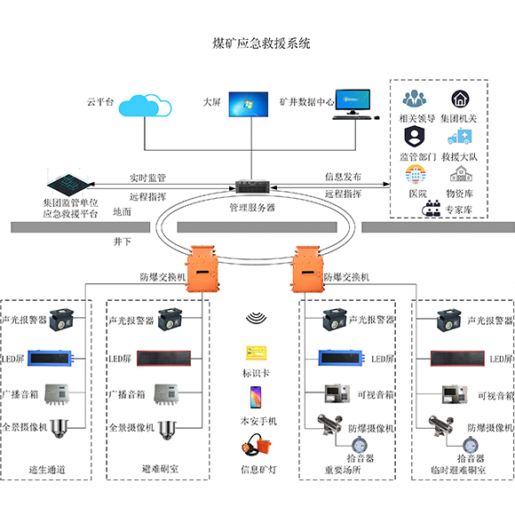 通訊與煤礦聯動,實現礦山應急調度救援系統始終如一,發生災害應急并具有PTT功能,在一分鐘內,所有礦工的安全逃生可在井下快速通知,可以有效地當發生滑坡、瓦斯等可滲透的事故征兆時,通過先進的通訊系統,可以及時通知其他作業地點的工作人員迅速撤離,特別是在礦山滑坡發生大面積地下作業,完善通訊系統后,避免了人員傷亡事故的發生。可以通過固定路線有效地組織和指揮所有人員進入安全坑道,安全逃生,減少人員傷亡,降低損失。