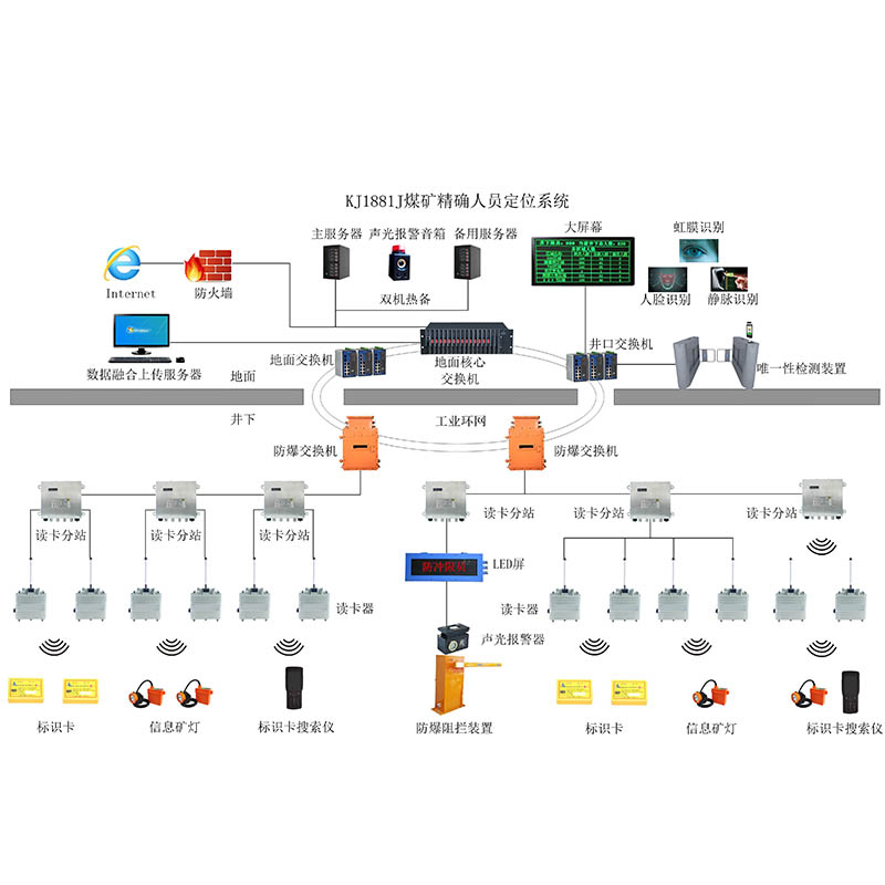 山東新云鵬KJ1881J礦用精確人員定位系統應用UWB技術進行的礦山人員定位管理系統,集人員考勤、區域跟蹤定位、日常管理、軌跡追溯、電子圍欄為一體的綜合性運用系統。定位精度在達到10厘米,基站定位距離突破1000米,最高可以容納標識卡數萬張,滿足各類煤礦的需求。系統涉及到無載波通信技術、嵌入式技術、網絡通信技術、數據庫技術和計算機技術等方面。系統以TCP/IP通訊網絡作為傳輸介質,通過安裝分站實現井下全覆蓋,讓監控對象配備相應的標識卡來實現與系統的掛接。